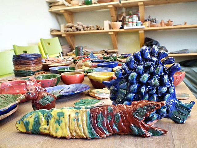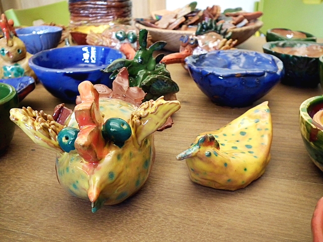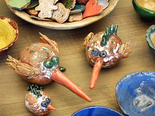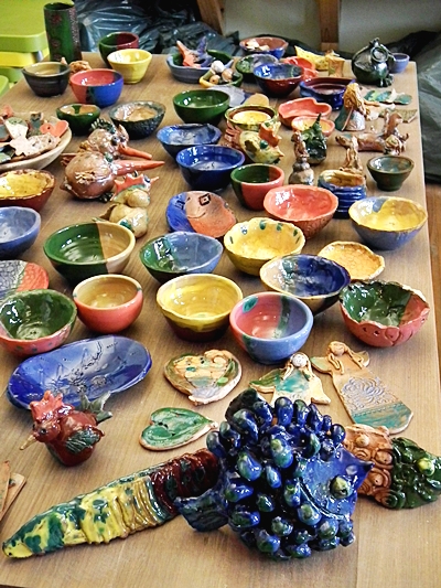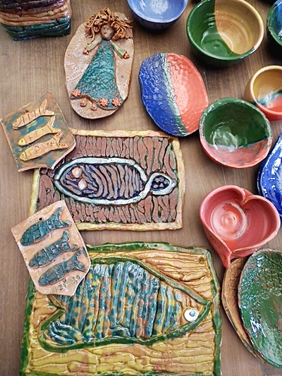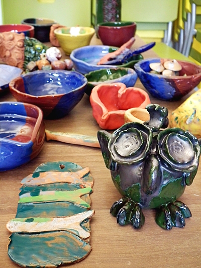 W czasie zajęć powstały miski, rybka zwana Niegocinką, pojemnik na kredki, Mazurski Kłobuk - prace wykonane przy pomocy koła garncarskiego.