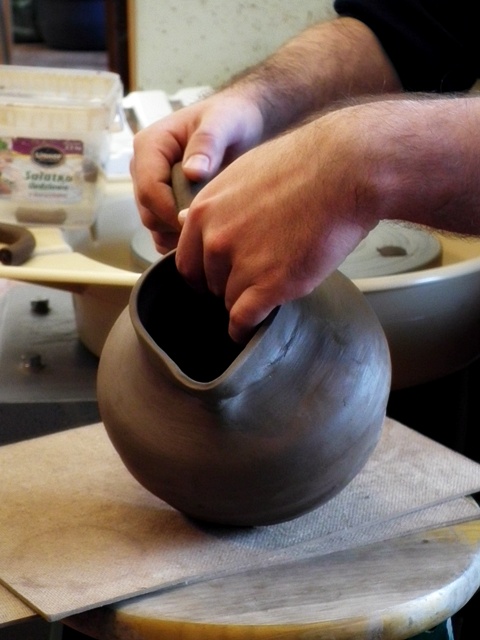 E.M.: Wszystkie są ciekawe. Zaintrygowała mnie możliwość ich łączenia, co powinno dać bardzo ciekawe efekty. Niesamowitym urządzeniem jest koło garncarskie. Dzbanek z wałeczków lepi się kilka godzin, przy użyciu koła powstaje w kilka minut. Już teraz mam pomysły na wspólne prace, moje i męża. On utoczy główną bryłę przedmiotu na kole, ja dorobię potrzebne elementy z wałków. Dzięki takiej kooperacji glina powinna równomiernie przesychać.