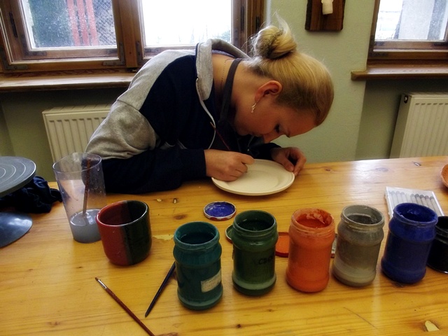 Ewa Milczarek: Przeglądałam w Internecie dziesiątki ofert. W pobliżu mojego miejsca zamieszkania nie znalazłam żadnej konkretnej. Propozycja Ogniem Malowanej trafiła do mnie. Wiele manufaktur ceramicznych po prostu sprzedaje swoje produkty, a na ich stronach internetowych brak konkretnych informacji dotyczących nauki. Kurs ceramiczny Grażyny Lachowicz ze swoim bogatym programem szczególnie do mnie trafił. Wiedziałam czego mogę się spodziewać. Zrealizowałyśmy wszystkie punkty programu, szkliwienie zaczniemy za chwilę.