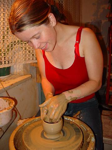 Poświęciłam się doskonaleniu garncarstwa - toczeniu na kole - wspomina Grażyna Kopeć - po kursie zaczęłam myśleć o otwarciu własnej pracowni. Takie były początki "Ogniem Malowana"